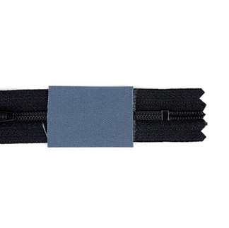 With zipper RS up and Zipper End piece seam side down, insert each zipper end into a Zipper End and line up the outer raw end with the previously drawn lines on the zipper. Position so that the drawn lines are just visible.