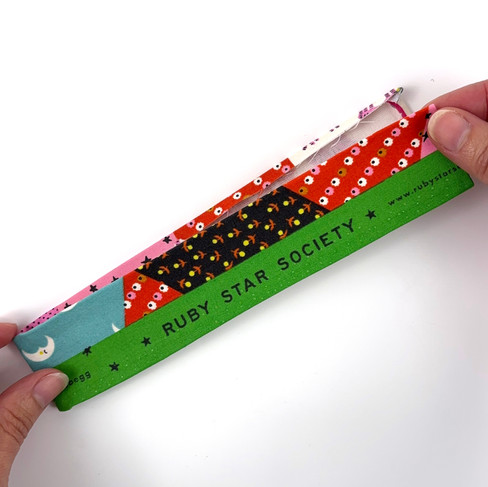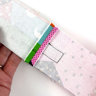 1 1/2'' x 3'' rectangle from coordinating quilting cotton for Velcro tab