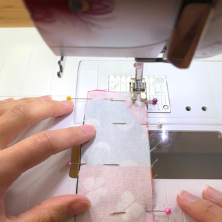 Sandwich bracelet front and back RS together. Pin the Velcro end and sew the edge. Open the bracelet flat and press the seam open.